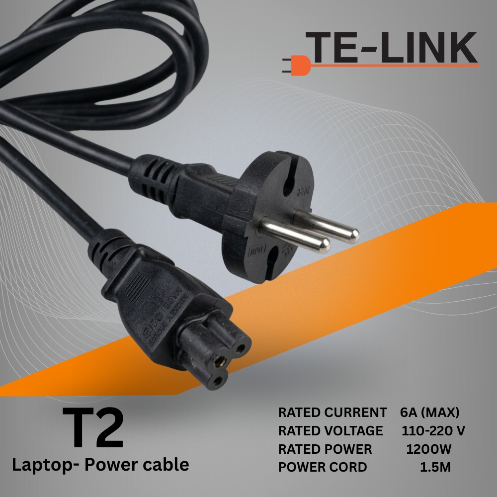 The TE LINK T2 Power Cable is designed for laptops, offering a secure and stable power connection every time.
